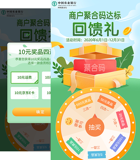 此活动深度契合四川农行的金融营销需求,以趣味性的抽奖营销活动,有效激励定向客户使用农行聚合码进行收款,大大提升了聚合码使用效率,增强用户黏性。
